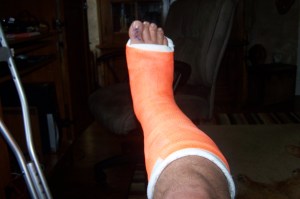 I went to Doctor Phluger’s office to get the “hard cast” on my right leg.